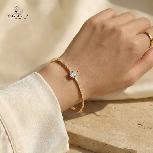 צמיד קשיח מכסף 925 בשיבוץ קריסטלים למראה מתוחכם