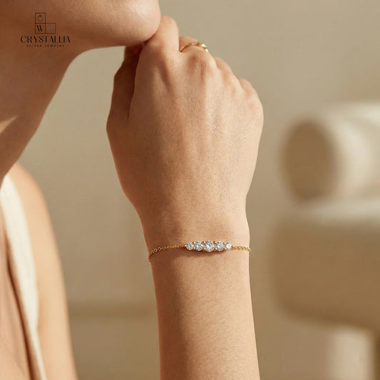 צמיד כסף 925 בעיצוב מעודן ושיבוץ אבני קריסטל