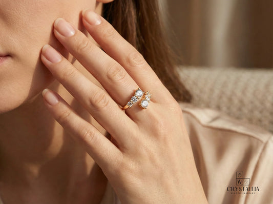 טבעת יוקרתית בציפוי זהב 14K עם אבני קריסטל - Crystallia