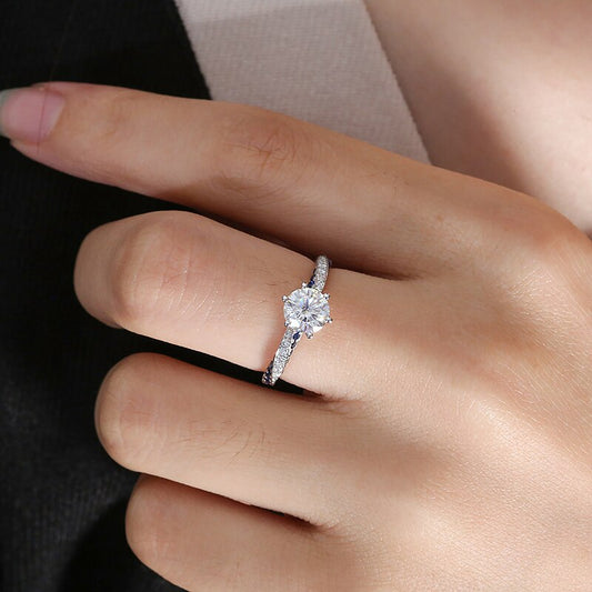 טבעת נישואין יוקרתית מכסף סטרלינג 925 עם קריסטליה מוסינט: עצרו את הרגע בסגנון קלאסי