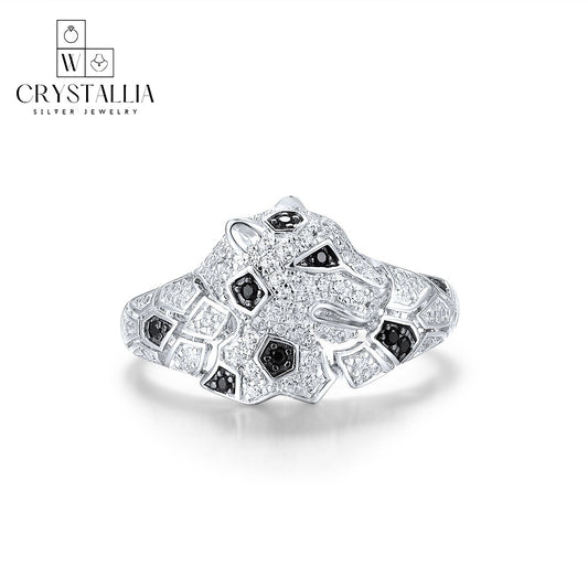 טבעת נמר יוקרתית מסטרלינג 925 עם ספיר וקריסטלים - אור כסף