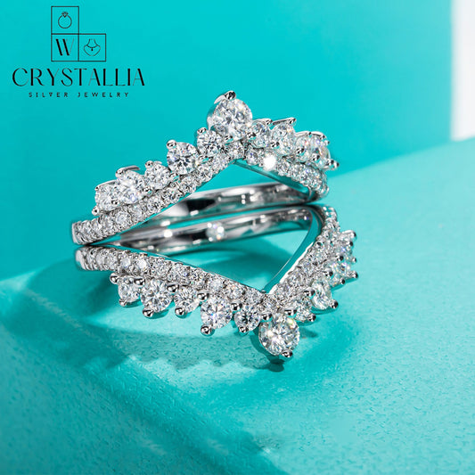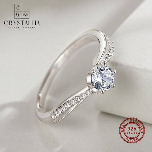 טבעת חתונה יוקרתית מכסף סטרלינג 925 עם קריסטל לבן - קריסטליה וורד