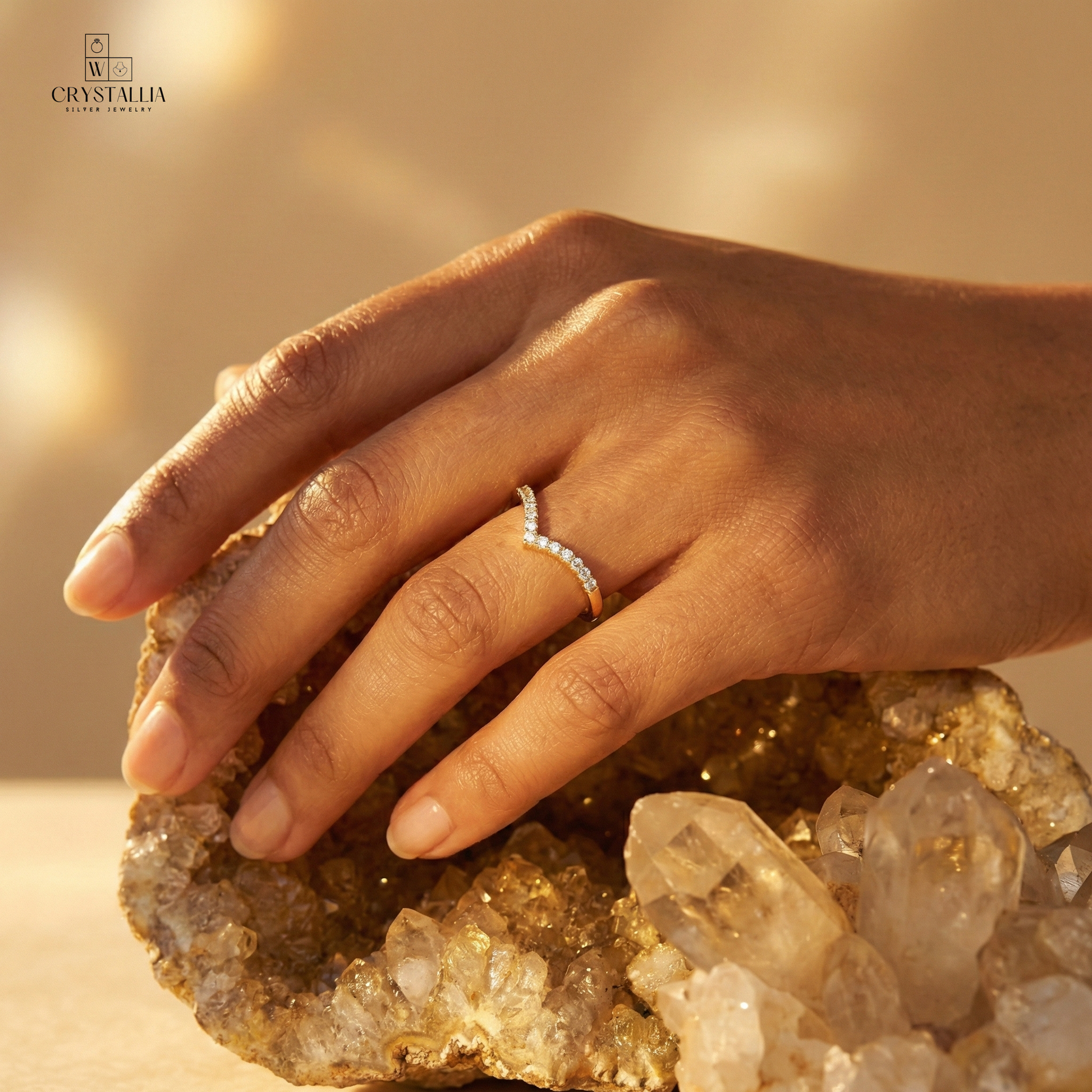 , טבעת בעיצוב יוקרתי ומסוגנן, הנעשית מפליז בציפוי זהב 14K איכותי ומשובצת באבני זרקון מרהיבות.