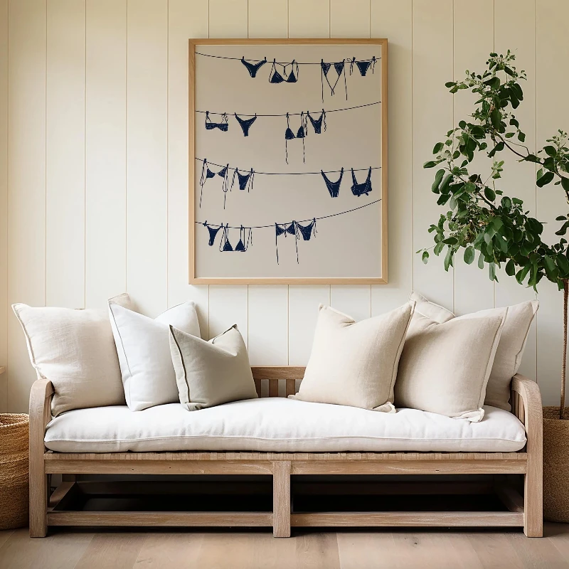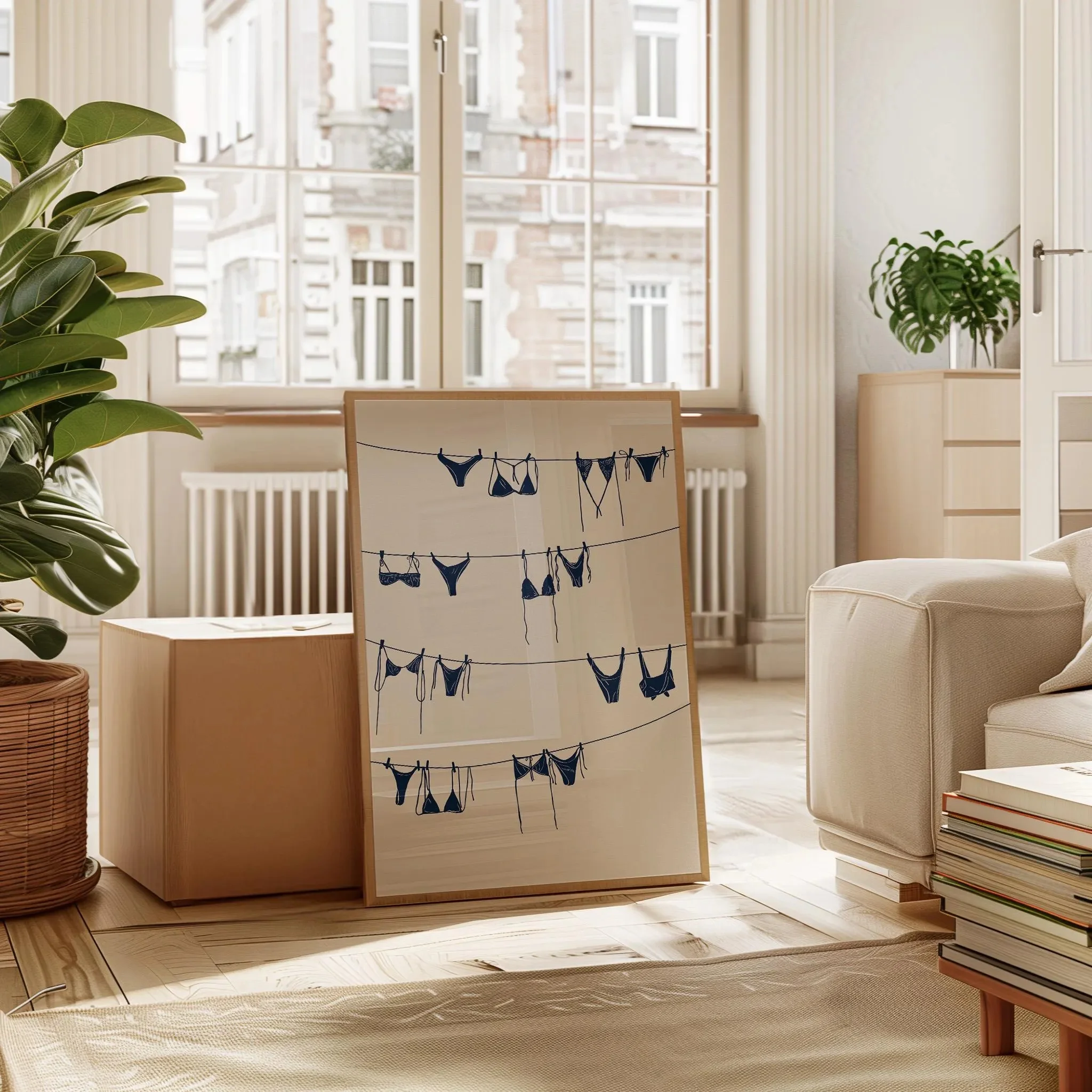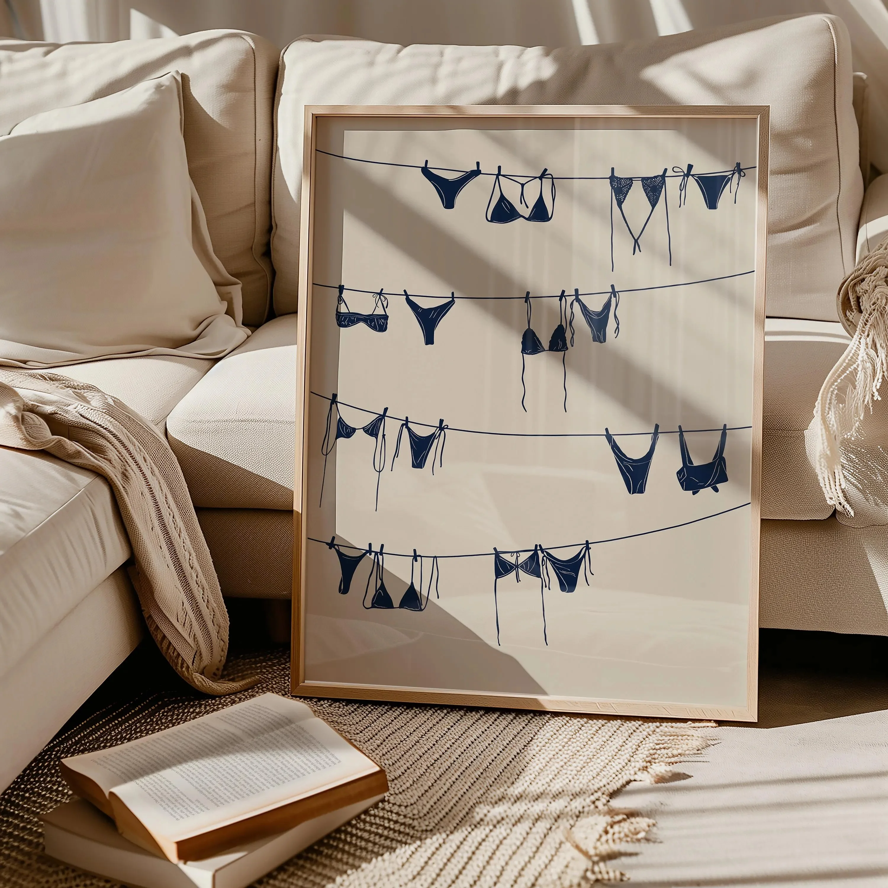Dark Blue Bikinis Wall Art Print, Bathing Suit Poster, Blue Beachy Prints, Coastal Cowgirl Wall Art, College Apartment Decor