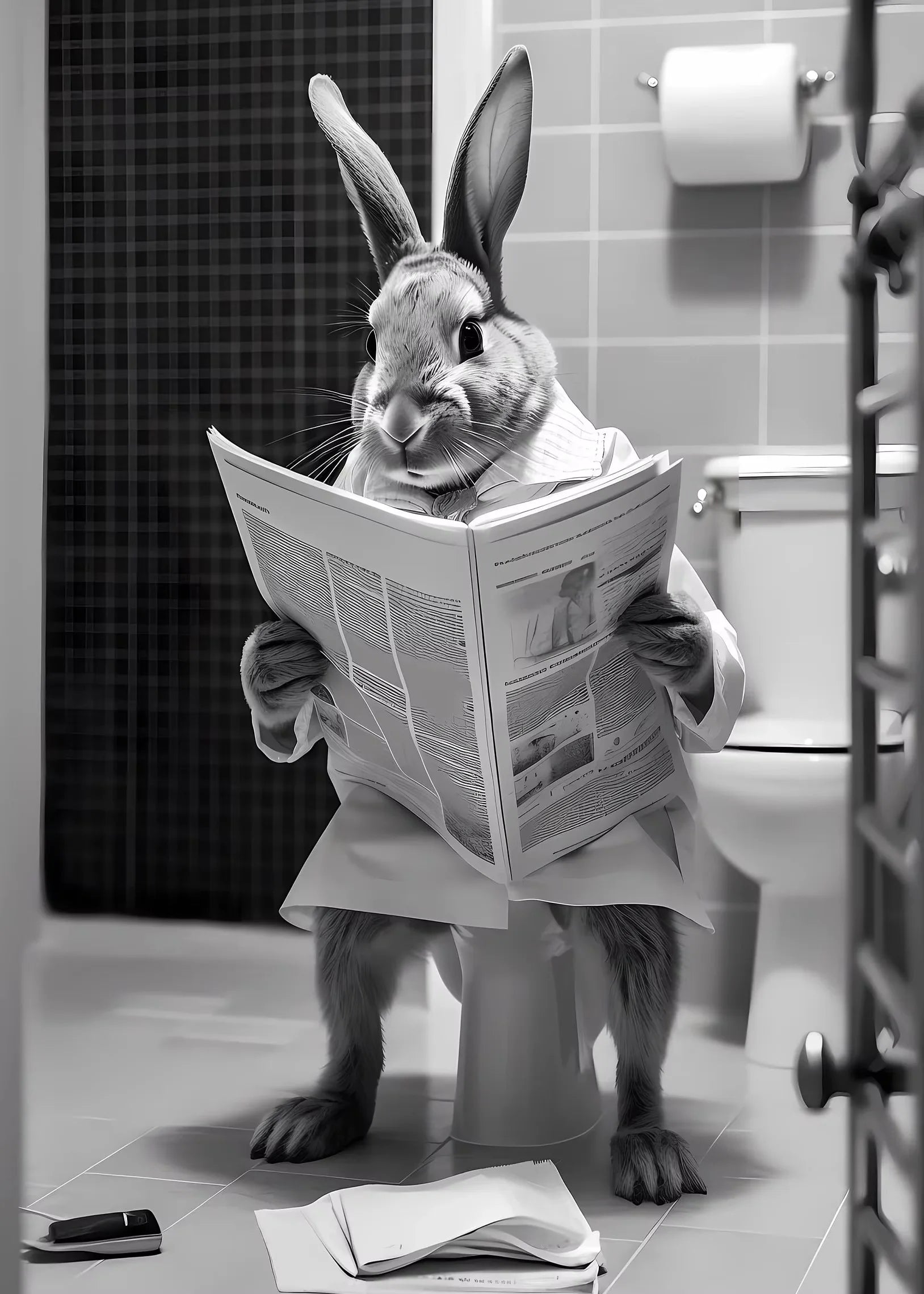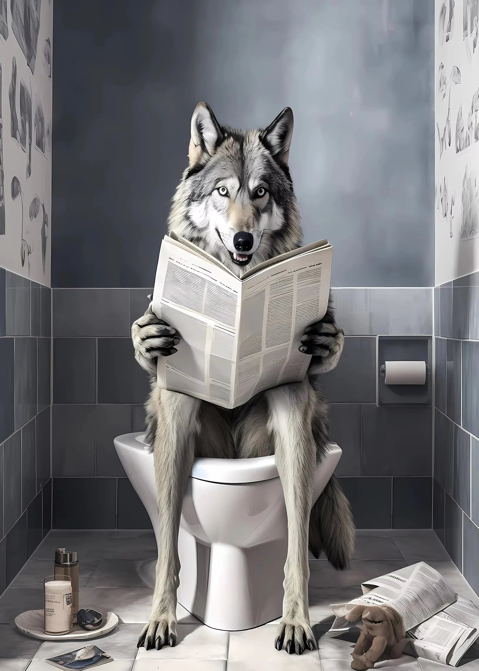 Funny Bathroom Lion Cow Sitting on Toilet Reading Newspaper Poster Modern Wall Art HD Picture Canvas Print For Room Home Decor
